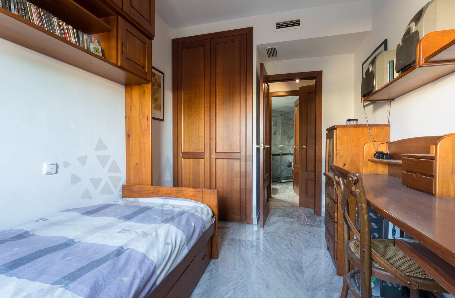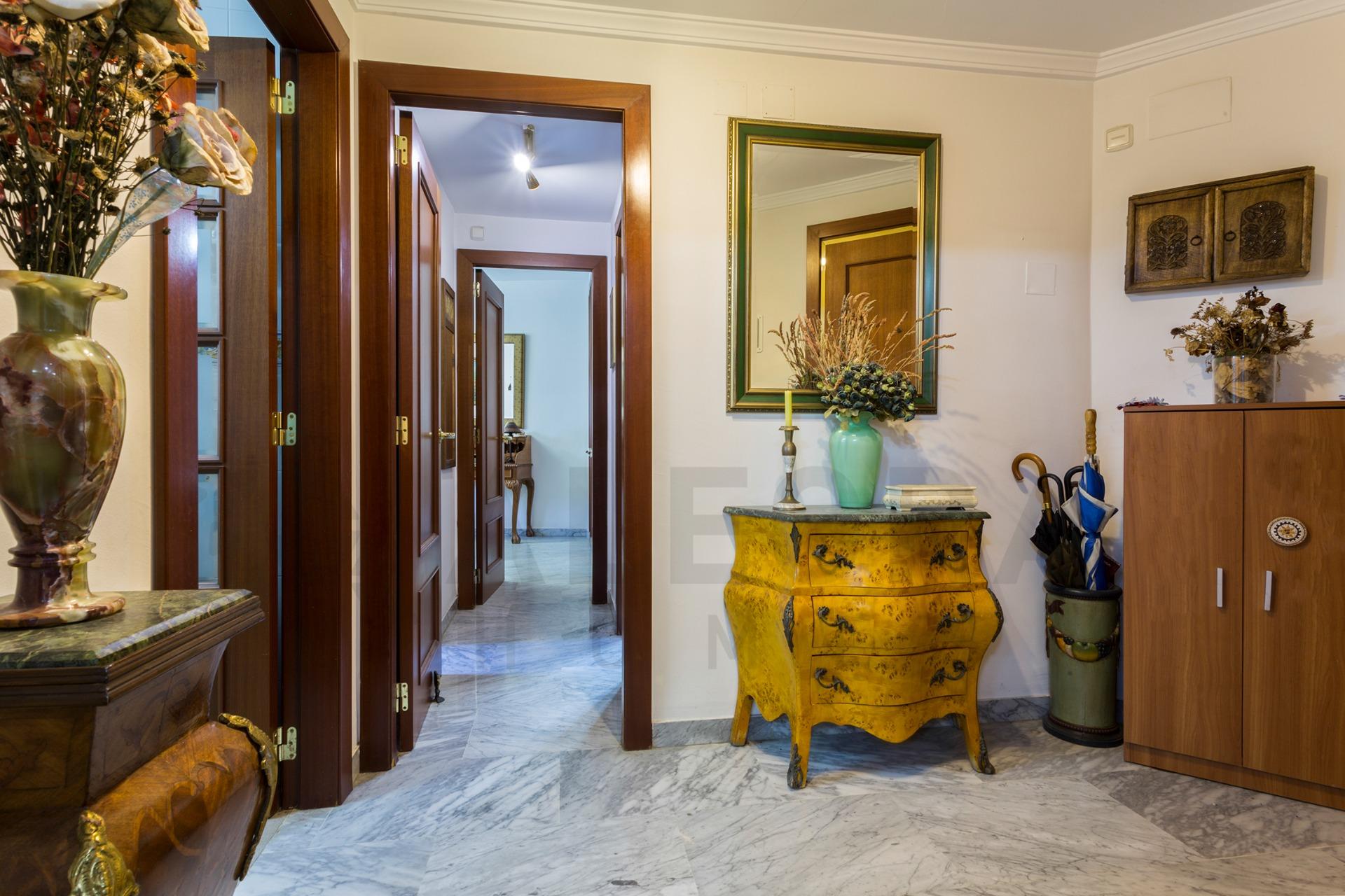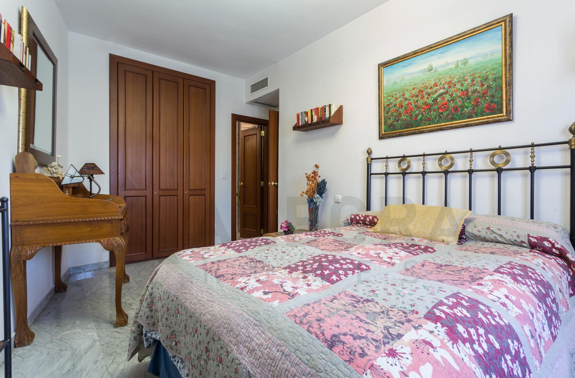 Te presentamos esta exclusiva vivienda ubicada en una de las zonas más demandadas de Sevilla, La Buhaira, destacada por su excelente comunicación, tranquilidad y cercanía a todo tipo de servicios.~~✨ Características principales de la vivienda~~Superficie construida: 96 m²~~Distribución:~~2 amplios dormitorios, uno de ellos con armario empotrado~~2 baños completos~~Luminoso salón con salida a una pequeña terraza.~~Cocina independiente~~Calidades:~~Suelo de mármol~~Ventanas de doble acristalamiento~~Aire acondicionado centralizado~~Gas ciudad~~ Extras incluidos~~Plaza de garaje de fácil acceso~~Trastero de 8 m², ideal para almacenamiento adicional~~ Urbanización exclusiva~~Vivir aquí es hacerlo en una de las urbanizaciones más completas de la zona, que ofrece:~~Piscina exterior~~Piscina interior climatizada~~Pista de squash~~Zonas comunes ajardinadas~~Recinto cerrado, ideal para familias y para quienes buscan privacidad y seguridad~~ Ubicación privilegiada~~Situada en La Buhaira, una de las áreas más valoradas de Sevilla, con fácil acceso al centro, a estaciones (San Bernardo y edificio Viapol), transporte público, comercios, colegios y zonas de ocio.~~De acuerdo con lo prevenido en el Decreto 218/2005, de 11 de octubre, se informa al cliente que los Gastos Notariales, Registrales, impuesto de transmisiones (ITP), Honorarios de intermediación, Gastos financieros, y otros gastos inherentes a la compraventa no están incluidos en el precio.~